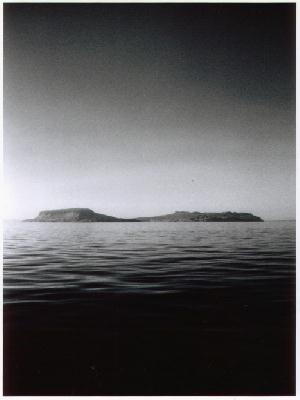 the jetty on Rum on a perfectly clear day, in contrast with the stormy day