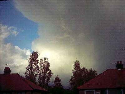 from my garden, facing westwards, during the approach of a thunderstorm. Sun