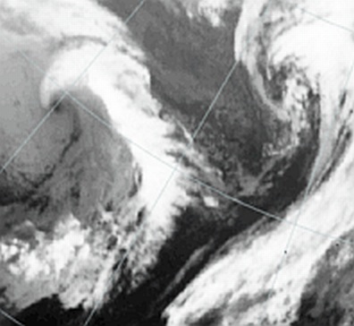 Finally, this series of images from western Canada shows the lifetime of explosive cyclogenesis, from frontal wave, through baroclinic leaf, to fully-blown depression. Images are all taken from www.umanitoba.ca: