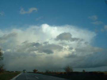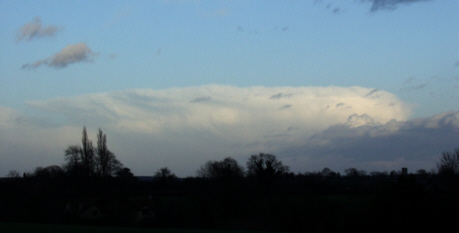 sprawling downwind in an easterly direction. The back-sheared anvil would