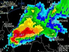 Below is an example radar image of the precipitation within a classic supercell, in the US: