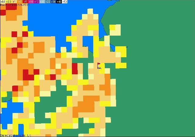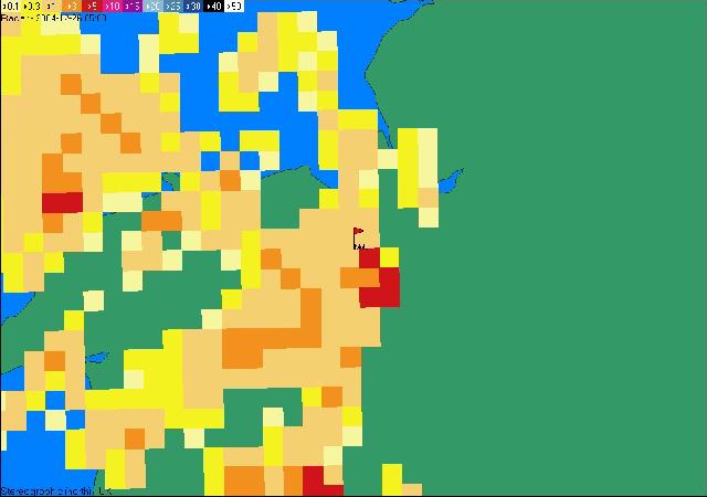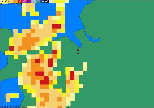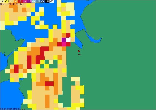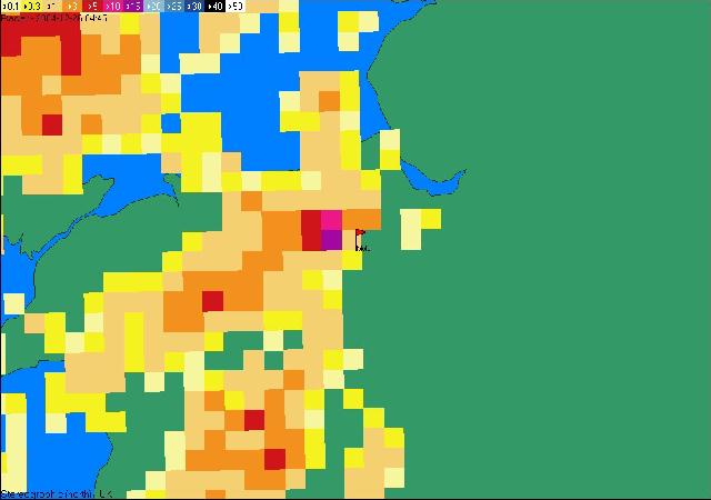 pixel is >50mm/hr, then purple pixel is >15mm/hr, the pink pixel >10m/hr