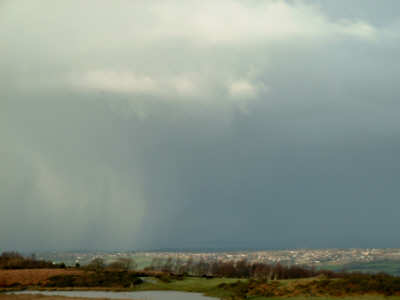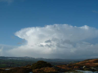 The following timelapse displays the approach and development of this stunning cumulonimbus, and also follows the snow's progress across the Cheshire Plain. It finishes with realtime footage of the snow falling on Hope Mountain. Again, the file is in WMV format and is about 1.3mb.