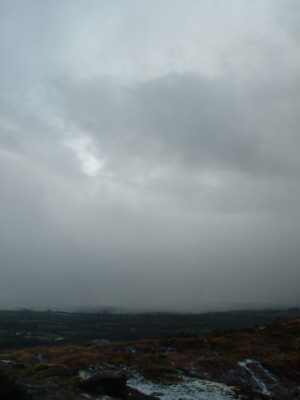 Only a couple of miles from the village is the ridge of Hope Mountain. At only 330m asl, it's not really a mountain, but it does mark the last point of high ground before the Cheshire Plain. For this reason, it has a view somewhat unrivalled along the Welsh border, and on a clear day one can see as far north as Scafell Pike, as far east as the Peak District, as far south as the Shropshire Hills, and as far west as Snowdon. In cold northerlies, I've often witnessed spectacular scenes as snow showers blast their way across the Cheshire Plain, and this Christmas Day was no exception!